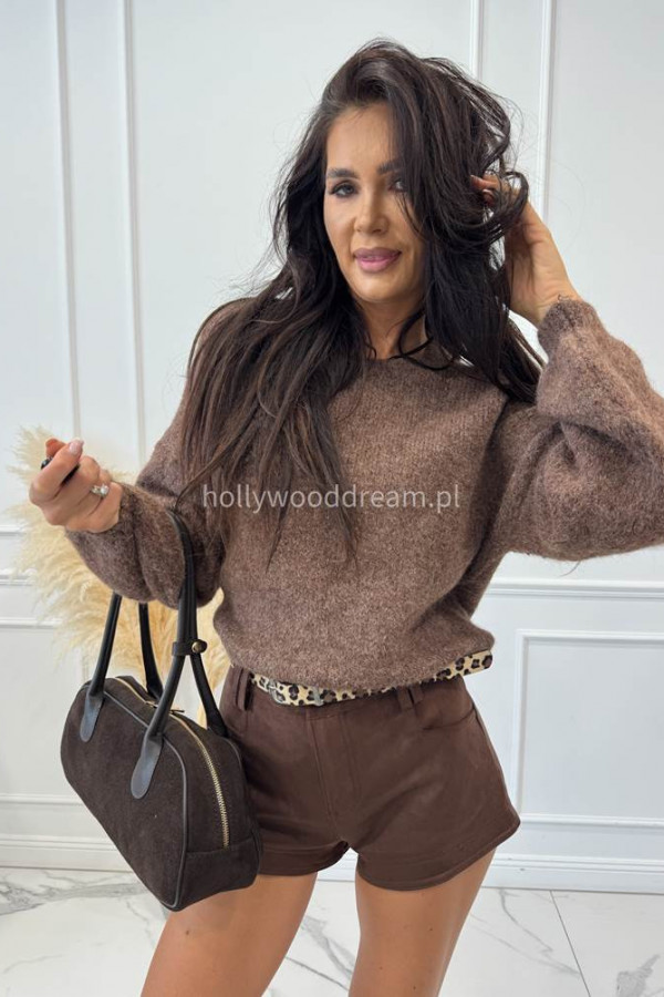 Czekoladowe spodenki krótkie al'a zamszowe z panterkwym paskiem 09