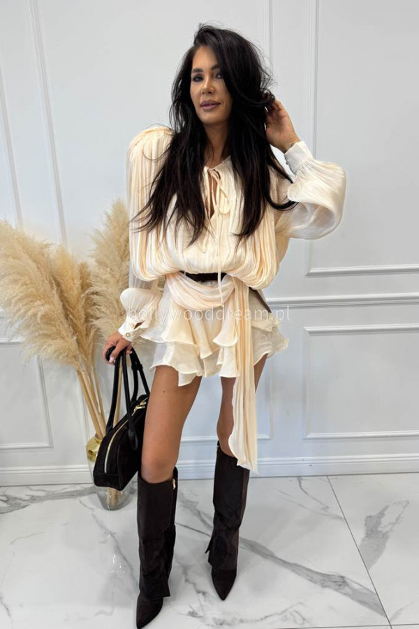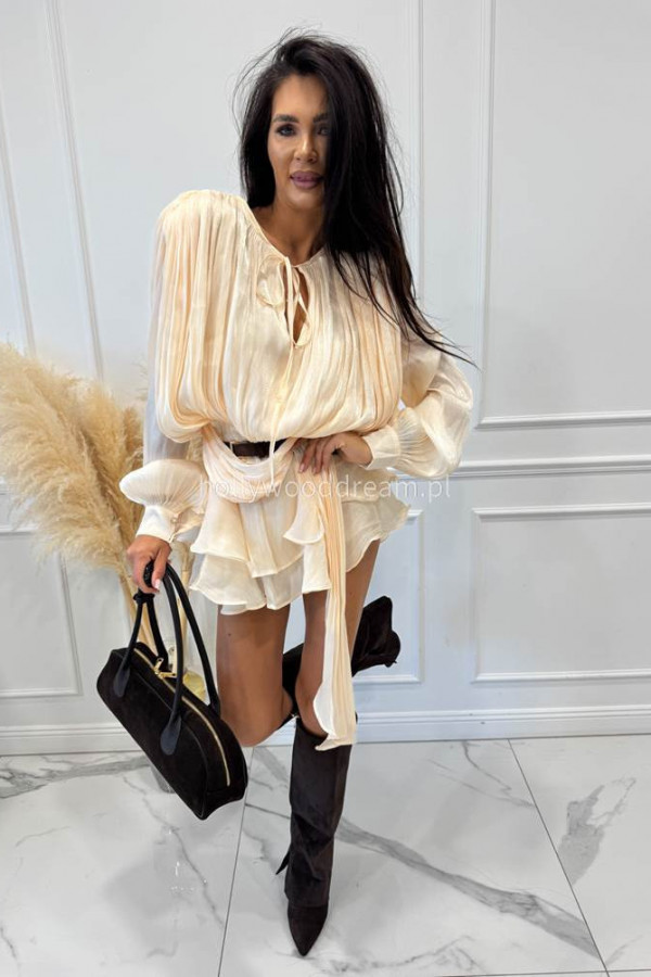 Morelowa sukienka z lejącego i połyskującego materiału JULIA to połączenie elegancji i subtelnego blasku, które przyciąga spojrzenia. Wykonana z lejącego, połyskującego materiału, pięknie układa się na sylwetce, podkreślając jej kształty i dodając lekkości ruchom. Morelowy odcień wprowadza delikatną, kobiecą nutę, a klasyczny fason sprawia, że sukienka sprawdzi się zarówno na wieczorne wyjścia, jak i na wyjątkowe okazje. Idealna do zestawienia z eleganckimi dodatkami i obuwiem, tworząc efektowną i stylową stylizację.