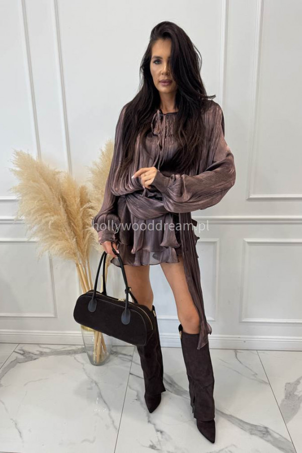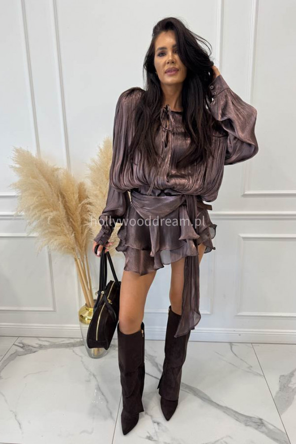 Czekoladowa sukienka z lejącego i połyskującego materiału JULIA 09