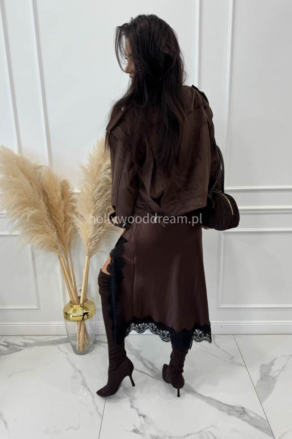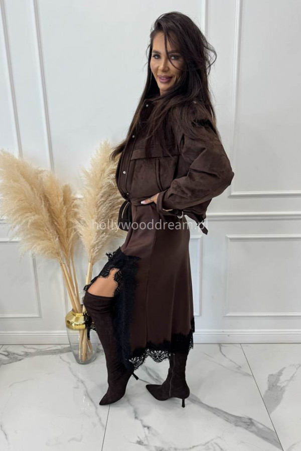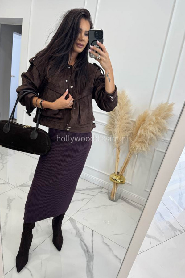 Czekoladowa kurtka zamszowa z dużymi kieszeniami ROZALIA 09
