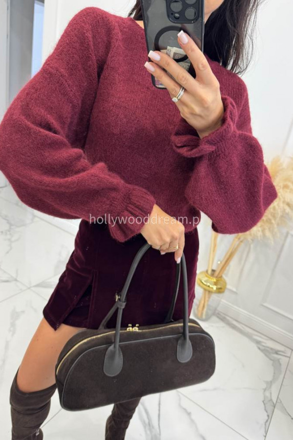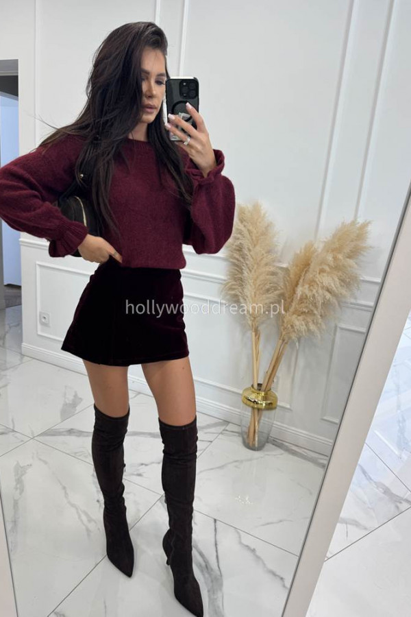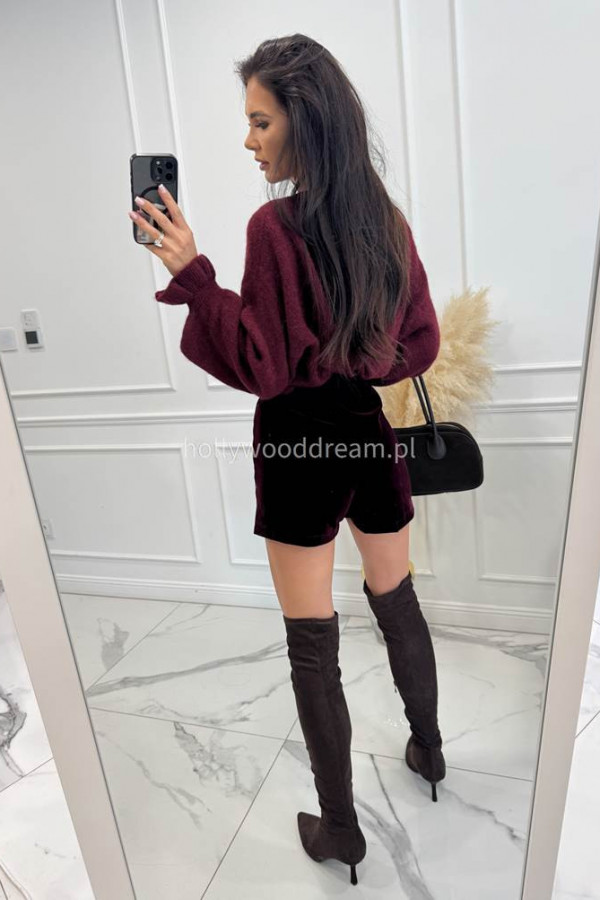 Bordowe spódnico-spodenki welurowe z rozcięciem ANTONI 09