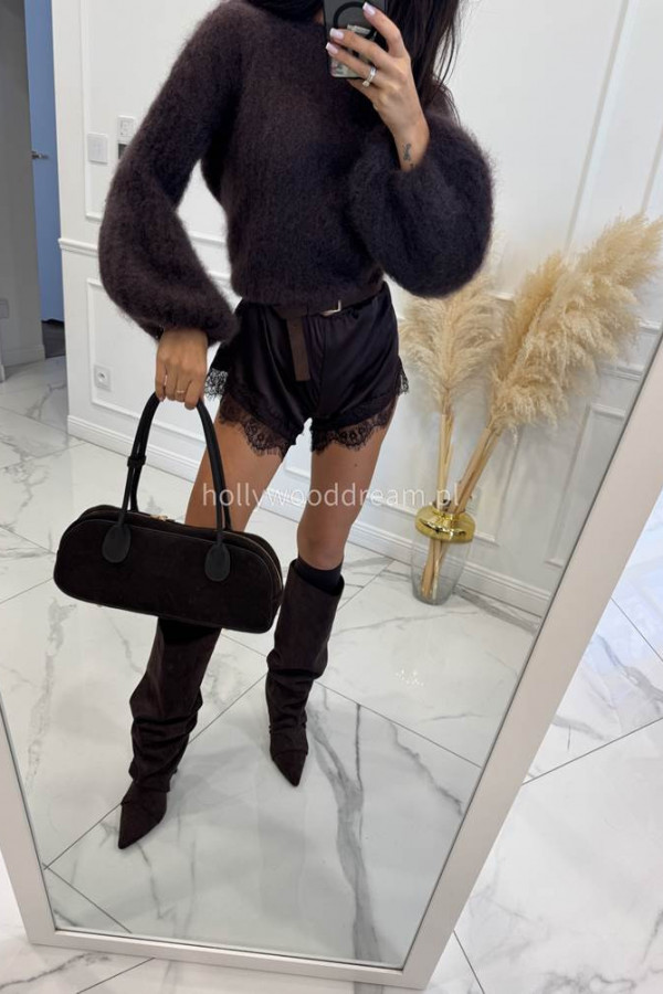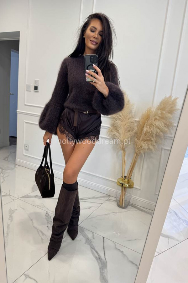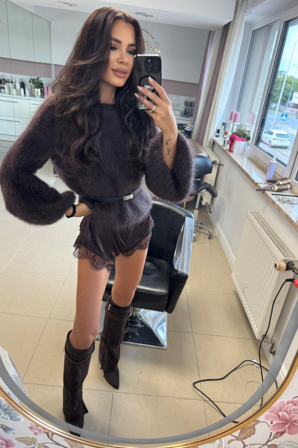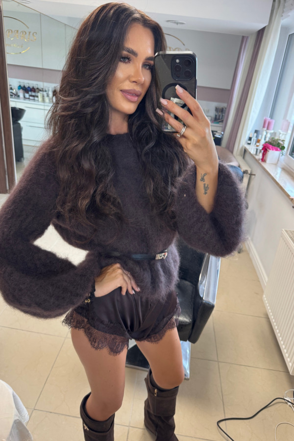 - Ciemno czekoladowy Sweter moherowy z poszerzanymi rękawami WALENCJA