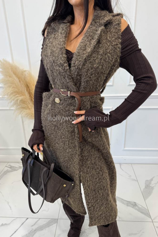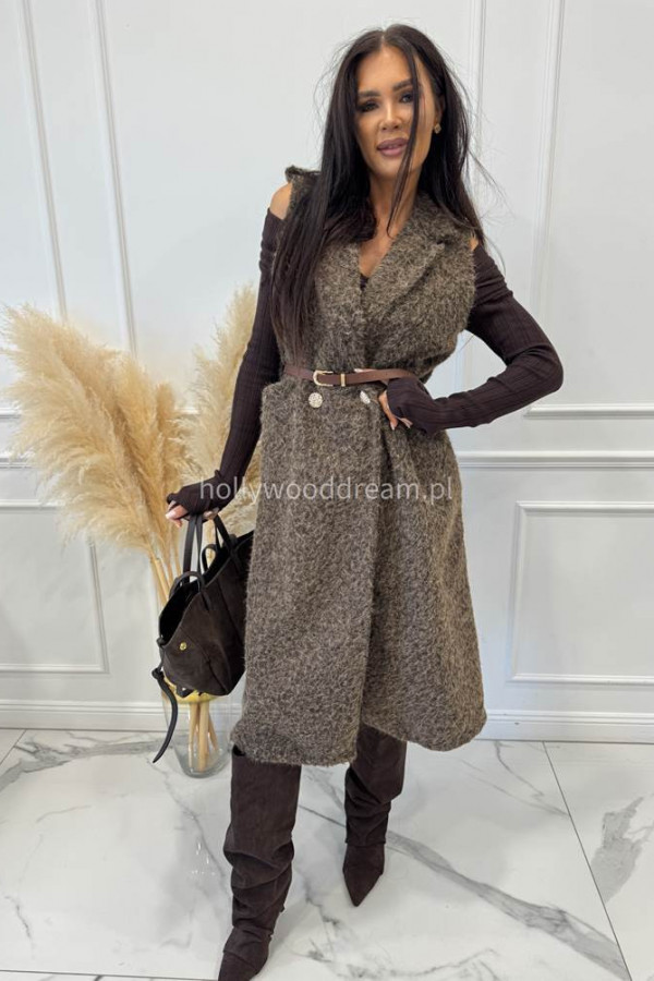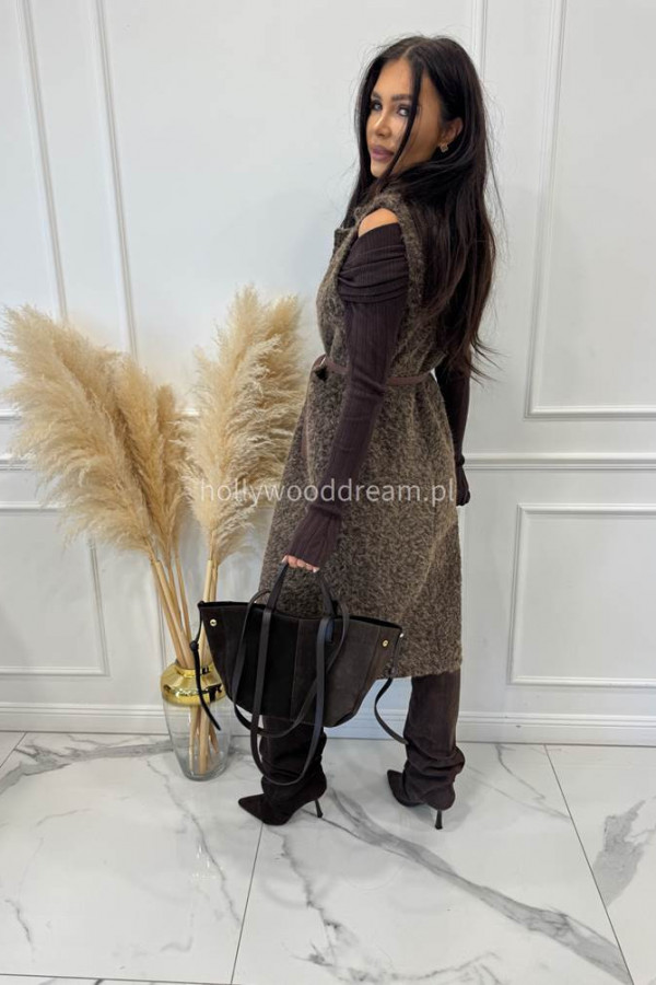 Czekoladowa pluszowa kamizelka maxi z paskiem COZY 19