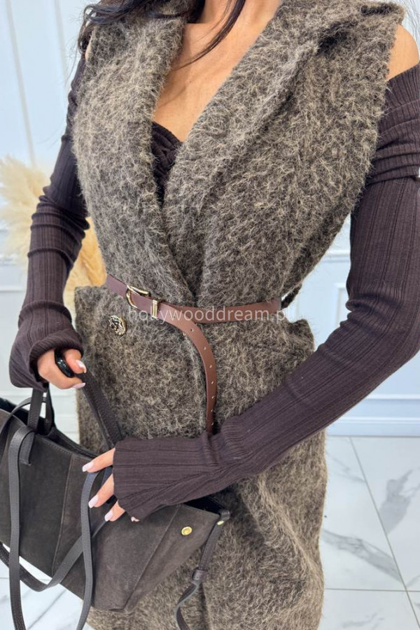 - Czekoladowa pluszowa kamizelka maxi z paskiem COZY