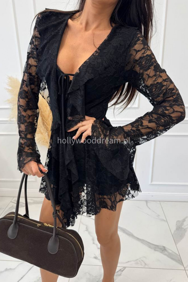 Czarny kombinezon z koronki z wiązaniem MICHAŁ 19