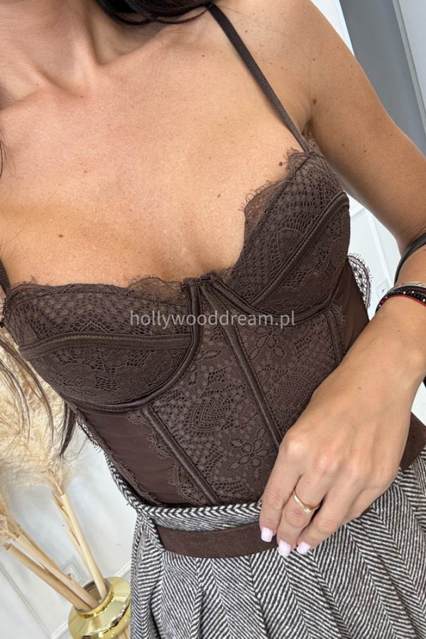 Czekoladowy top gorsetowy z koronką WERONA 09