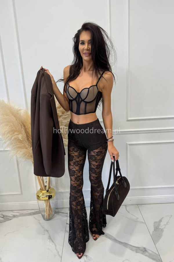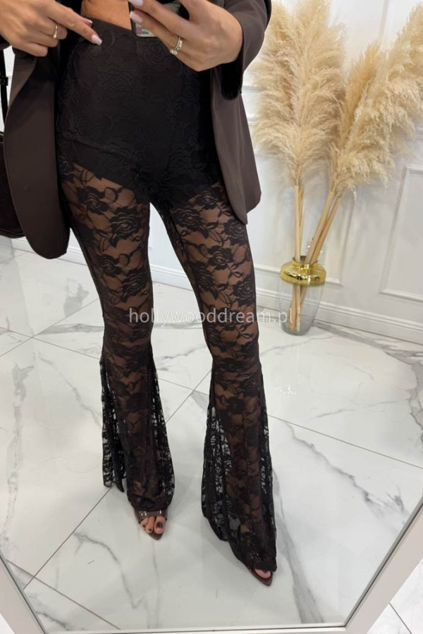 - czekoladowe spodnie koronkowe