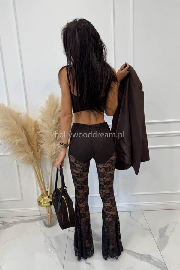 Czekoladowe spodnie koronkowe typu dzwony TYMON 19,17