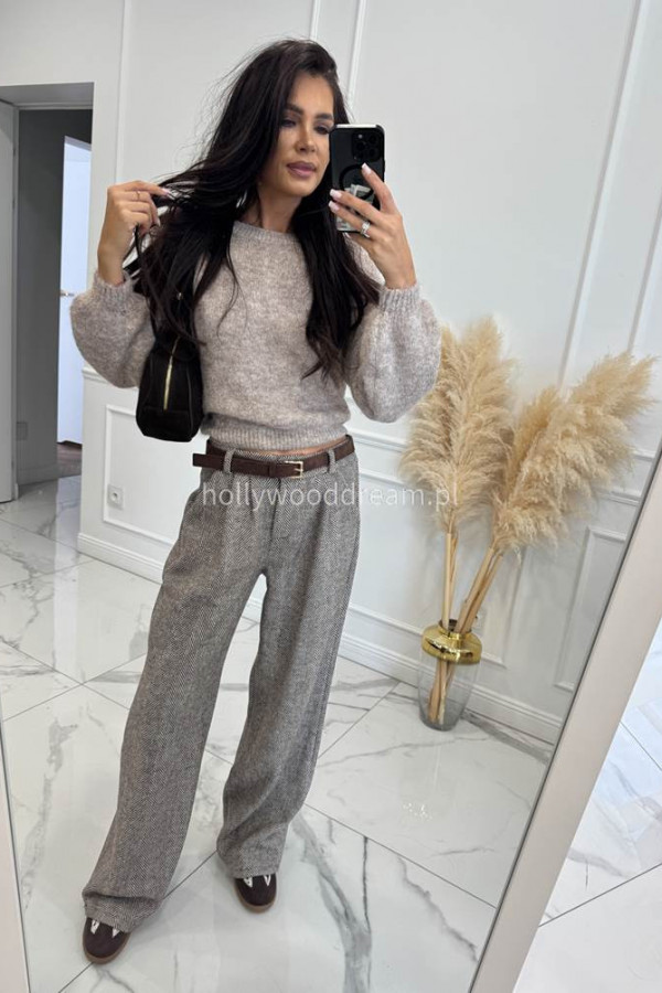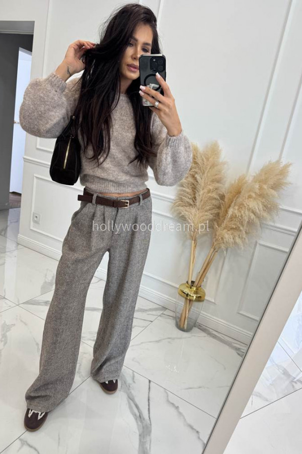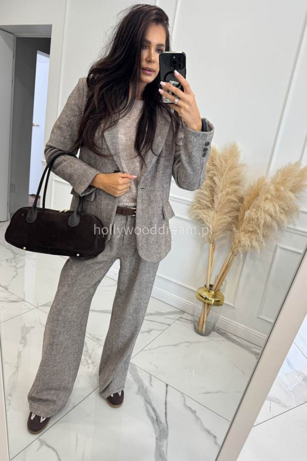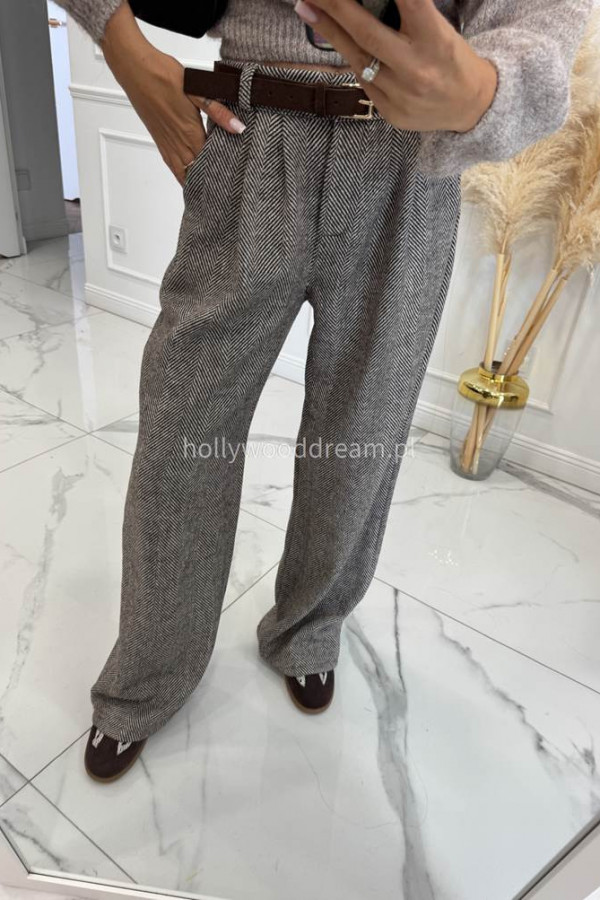 Czekoladowo-kremowe spodnie we wzór jodełki ARTUR 19