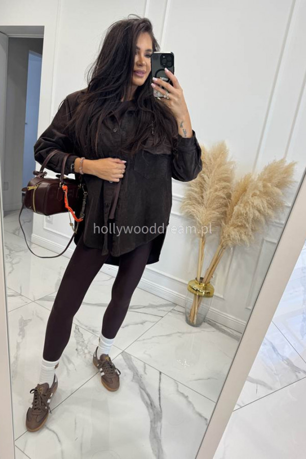 - Czekoladowa koszula sztruksowa z kapturem i kieszeniami DAGA