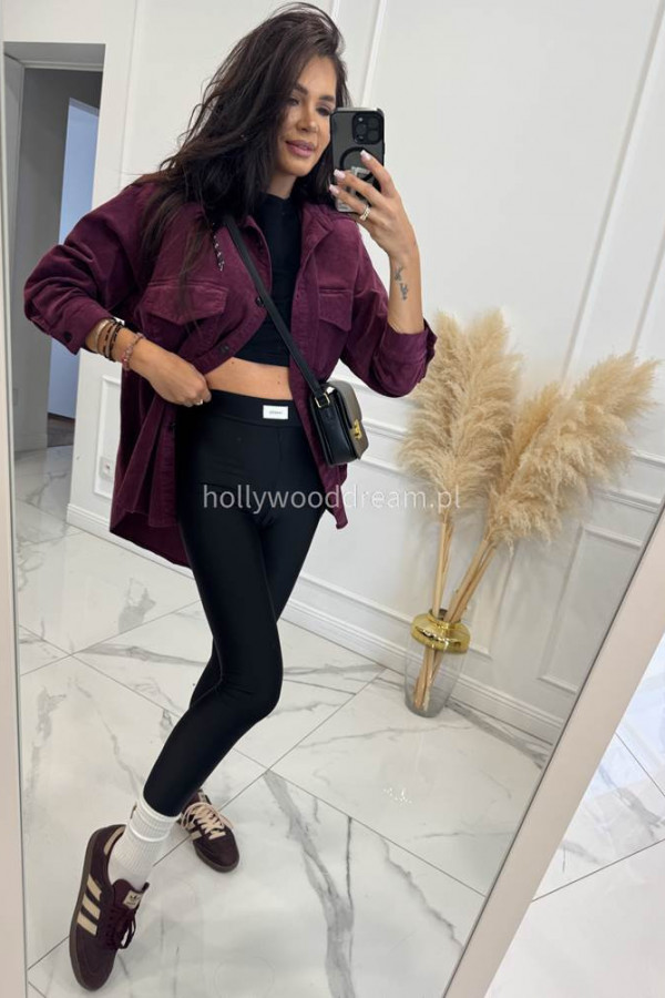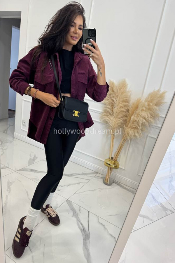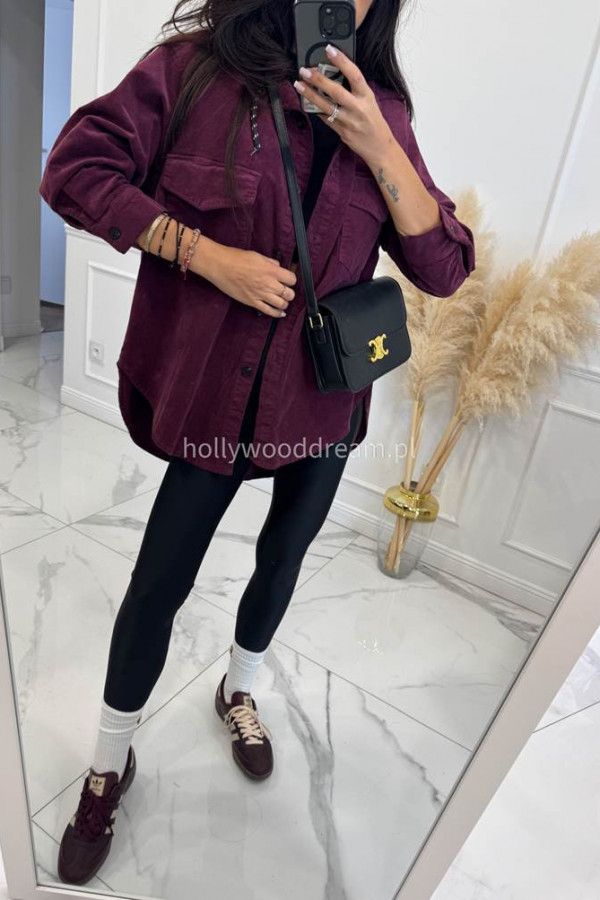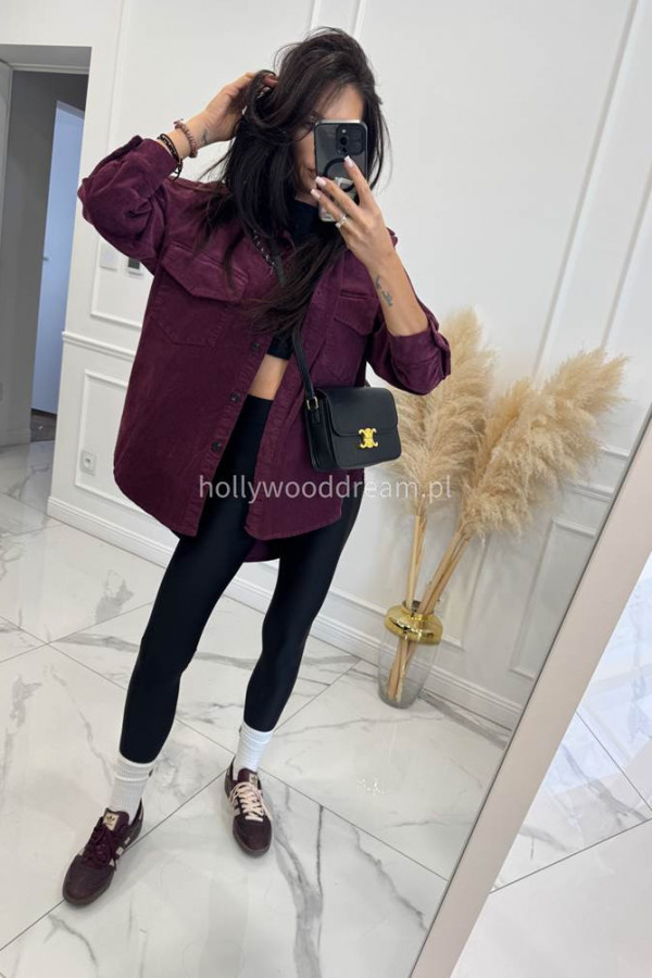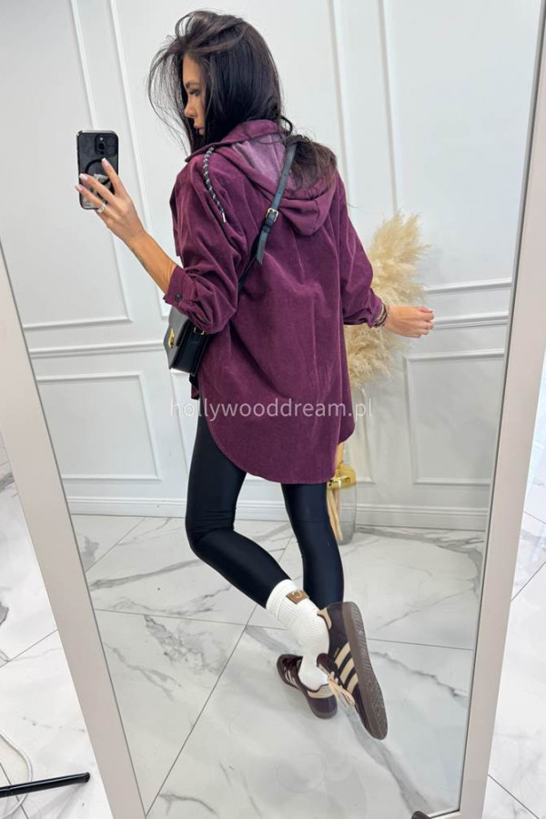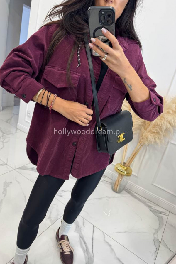 - Bordowa koszula sztruksowa z kapturem i kieszeniami DAGA