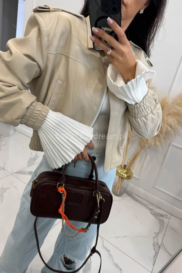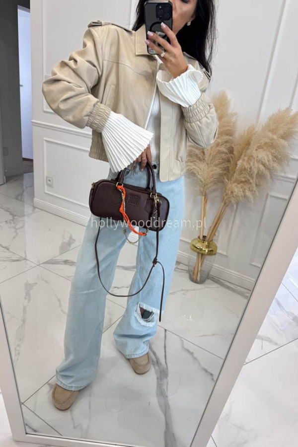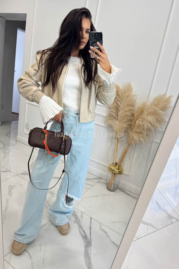 - Jasno beżowa kurtka skórzana bomberka OLD