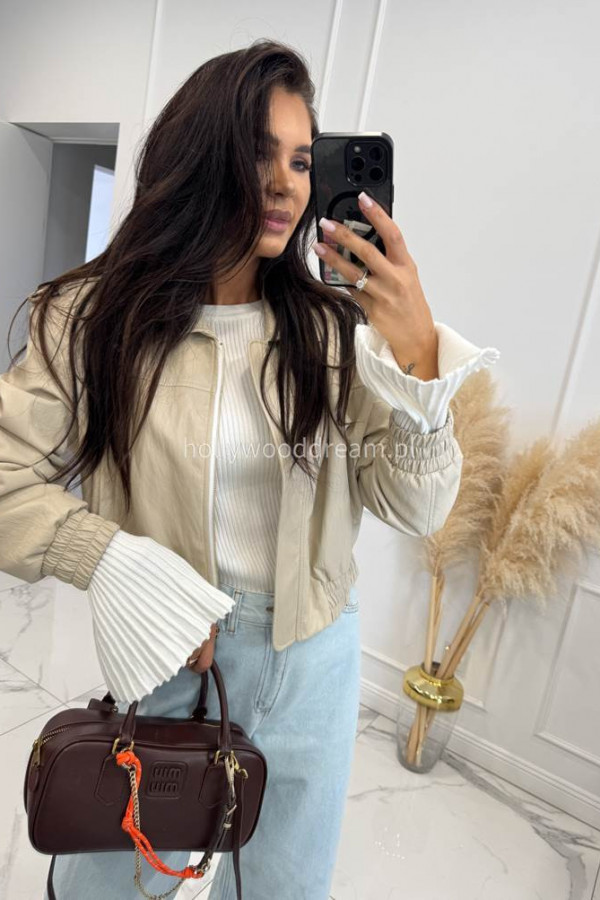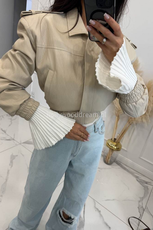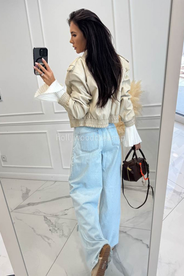 Jasno beżowa kurtka skórzana bomberka OLD 38