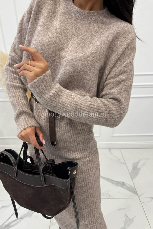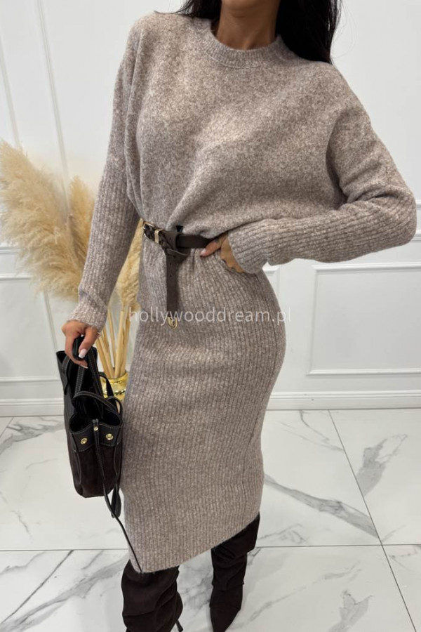 Beżowa sukienka midi sweterkowa z szerszą górą na długi rękaw ŻANETKA 31