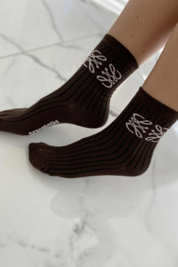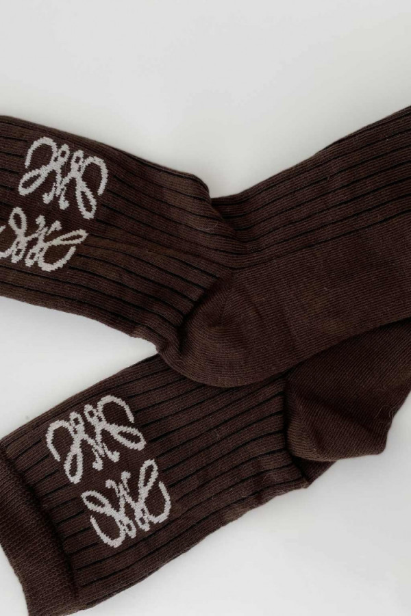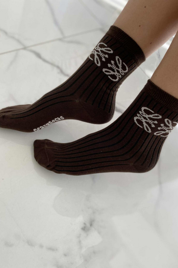 Czekoladowe skarpetki prążkowane z białym wzorem MONOGRAM