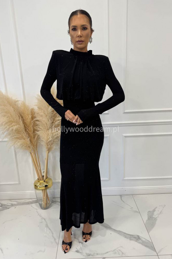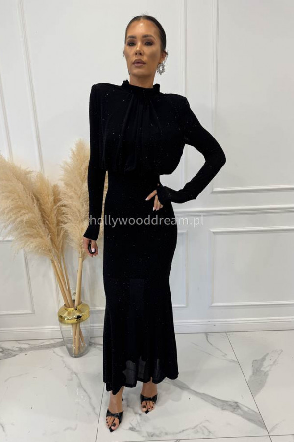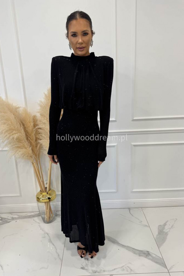 Czarna sukienka maxi z półgolfem i z cekinami DOROTA 24