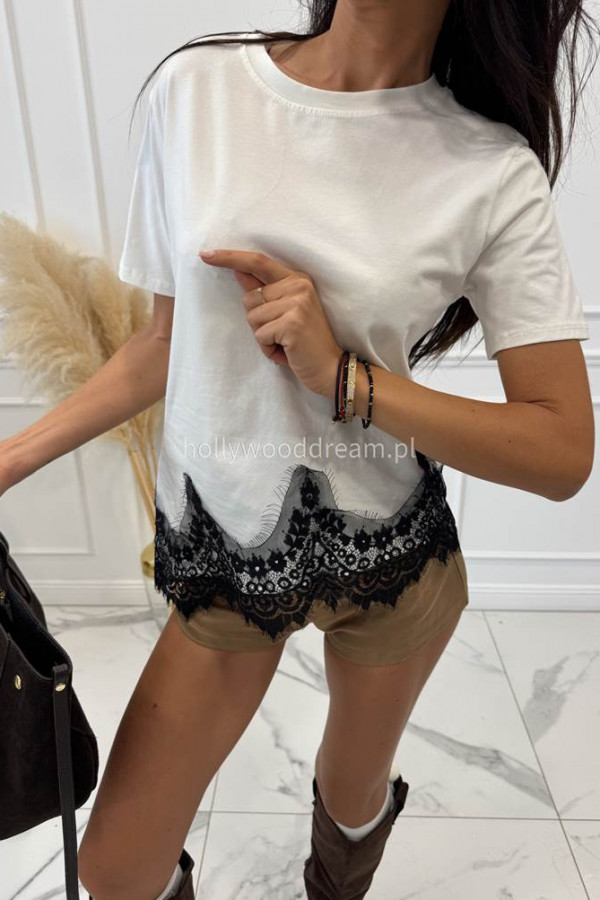 - Biała bluzka bawełniana z koronową lamówką LILTH