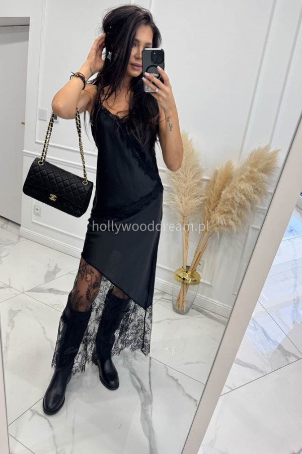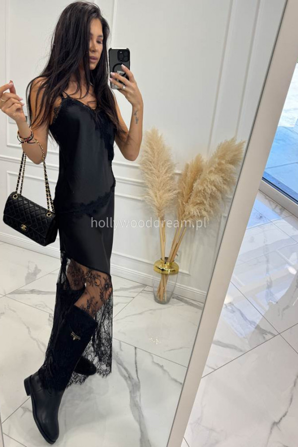 Czarny satynowy top na ramiączkach z koronką MAJA 17
