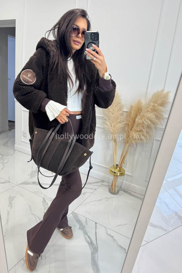 Czekoladowa kurtka pluszowa zapinana na zamek Wanda 129
