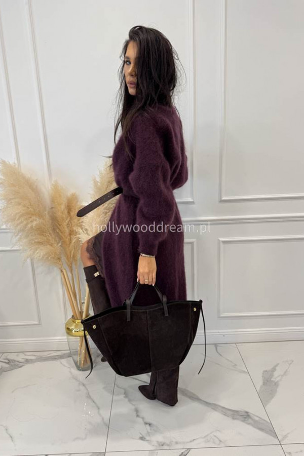 Kardigan długi kid moher śliwkowy ANTONIO 06