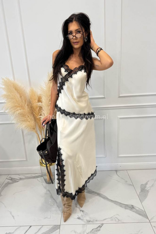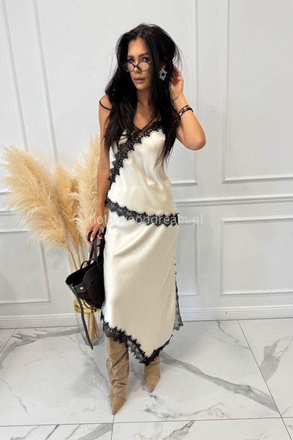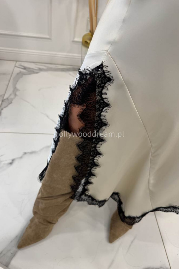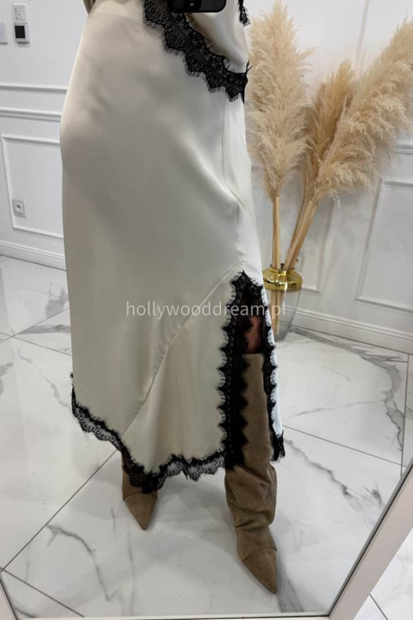 - Kremowa spódnica satynowa z czarną koronką MARZENA