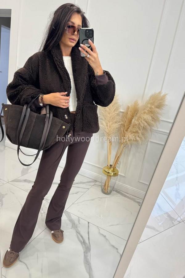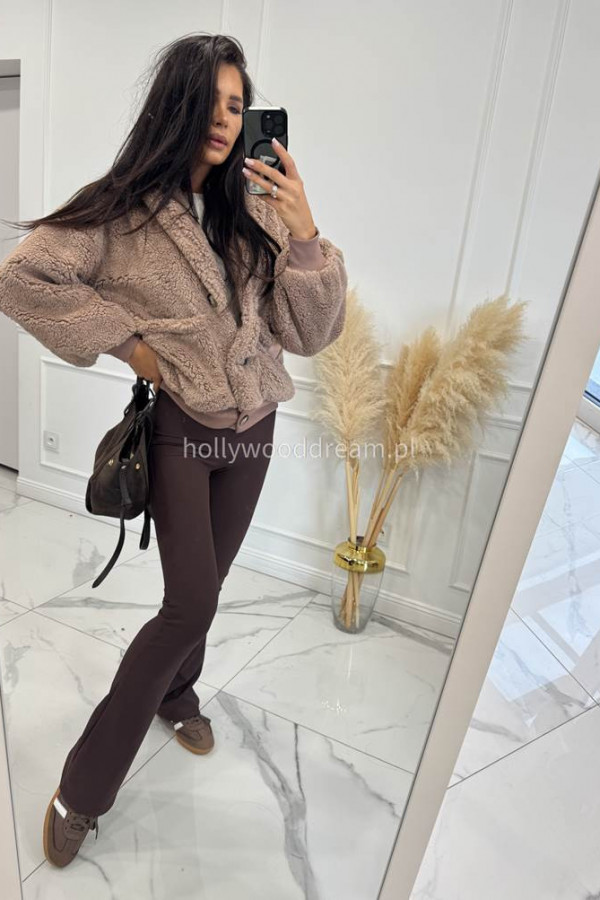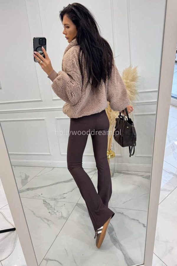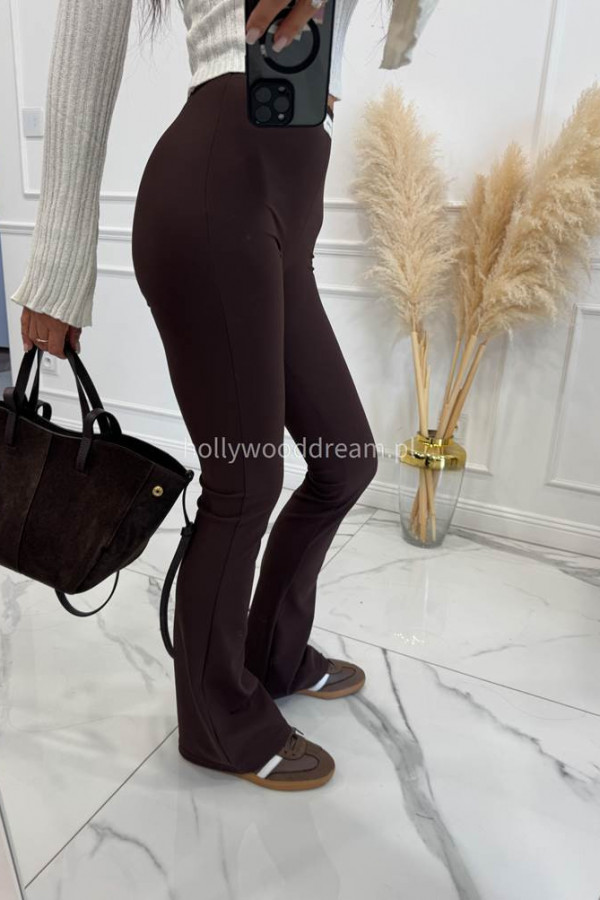 Czekoladowe legginsy dzwony prążkowane Majkel 34