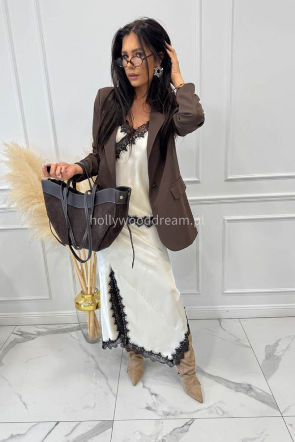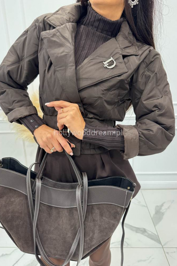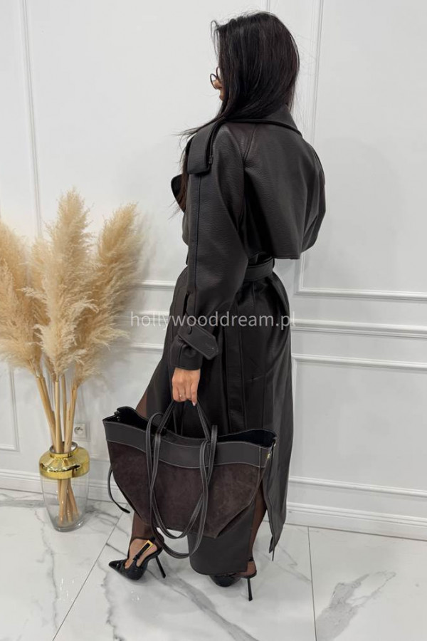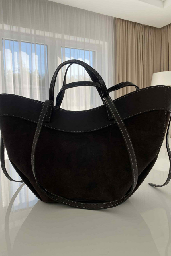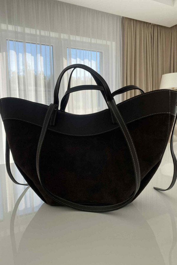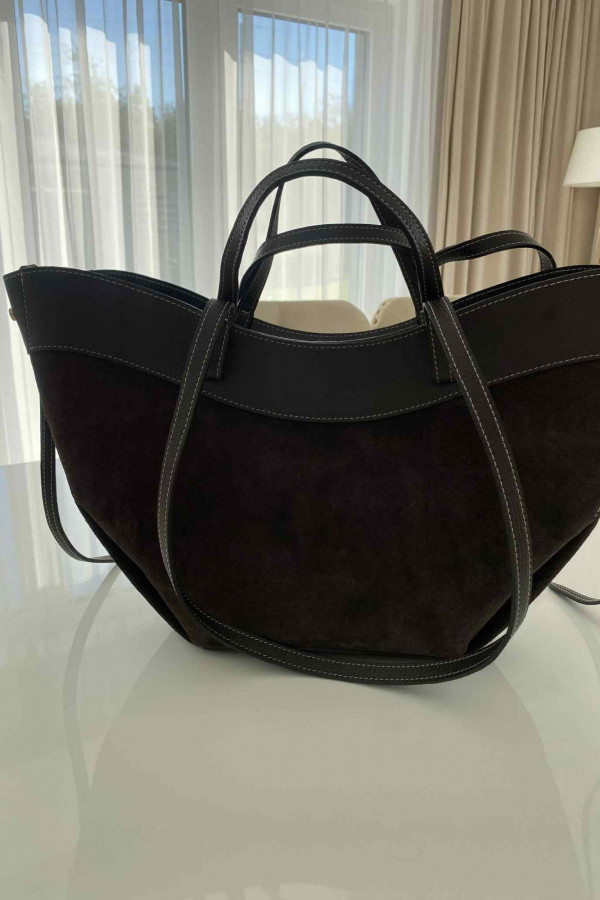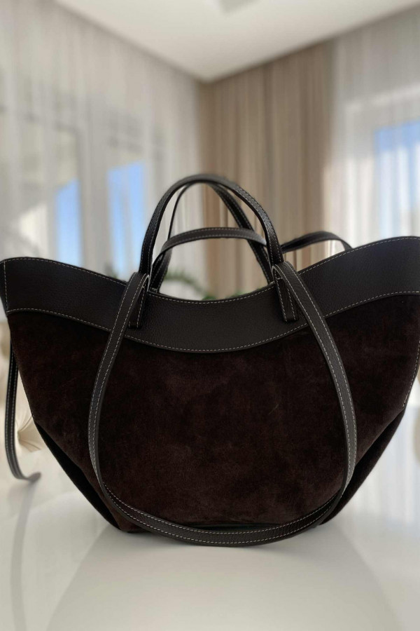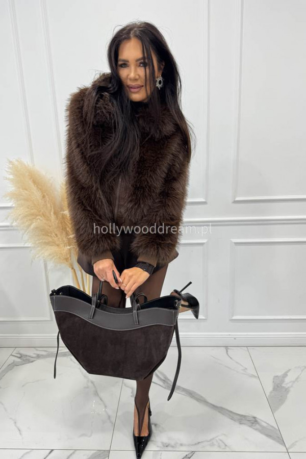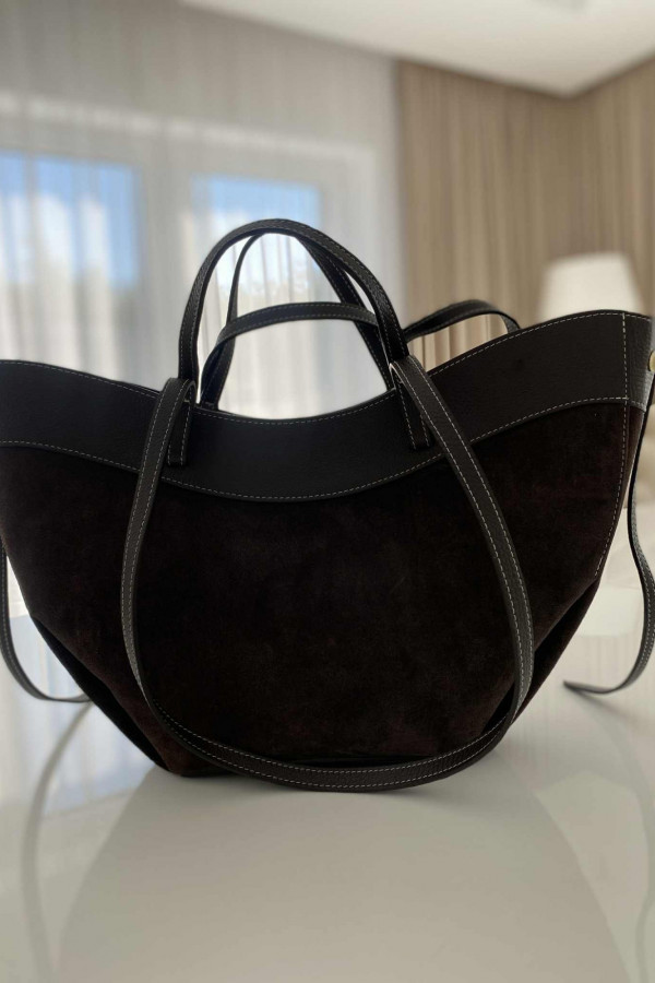 Czekoladowa torebka duża zamszowa ze wstawkami skórzanymi LEATHER