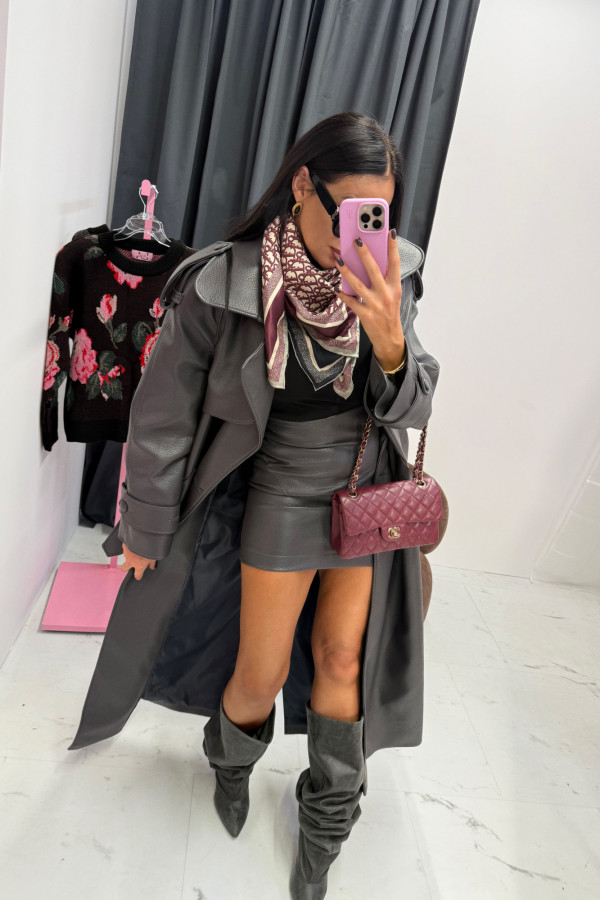 Czekoladowy płaszcz długi skórzany OLEK to elegancka i ponadczasowa propozycja dla kobiet ceniących klasę i wygodę. Wykonany z wysokiej jakości materiału, posiada pasek w talii, który pięknie podkreśla sylwetkę i dodaje całości kobiecego charakteru. Idealny zarówno do codziennych stylizacji, jak i na wyjątkowe okazje – stanie się bazą wielu modnych zestawów.