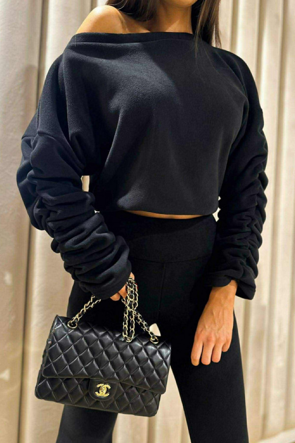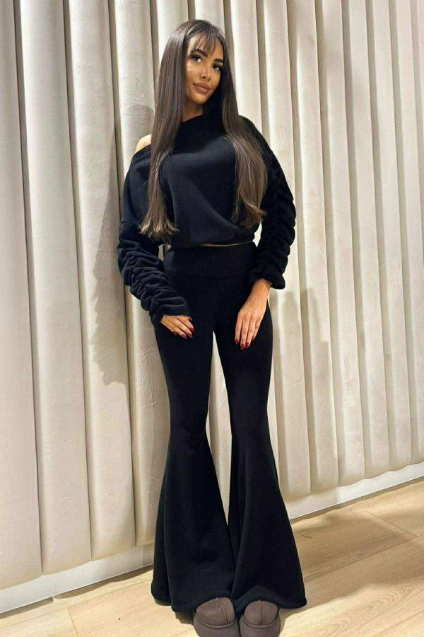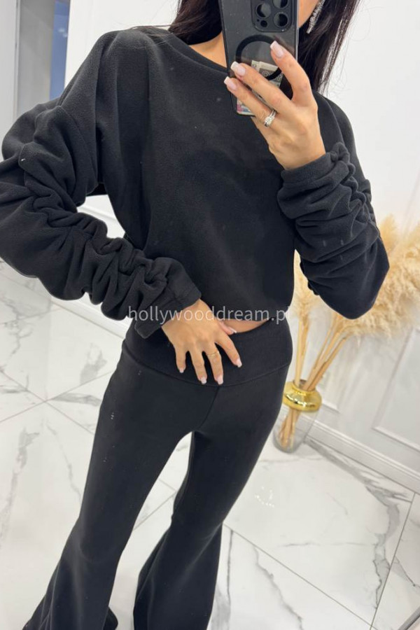 Czarny komplet polarowy Bear 173 to połączenie wygody i stylu – składa się z miękkiej bluzy oraz spodni idealnych na chłodniejsze dni. Wykonany z przyjemnego w dotyku materiału, zapewnia komfort i ciepło na co dzień. Świetnie sprawdzi się w casualowych stylizacjach oraz domowym relaksie.