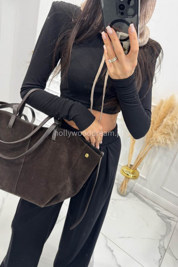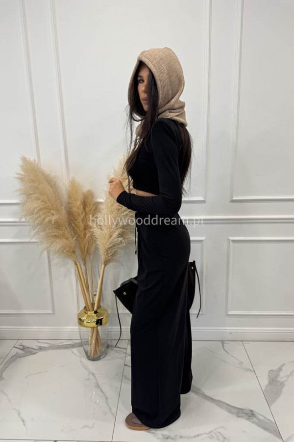Czarny komplet z wiskozą crop top + spodnie Comfy 173