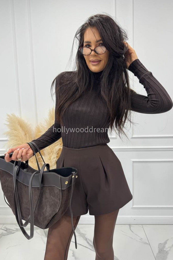 Czekoladowe krótkie spodenki szerokie z przeszyciami LAMI 25