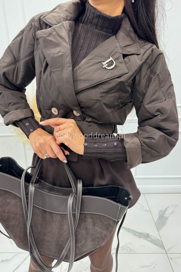 - Czekoladowe krótkie spodenki szerokie z przeszyciami LAMI