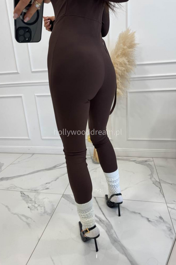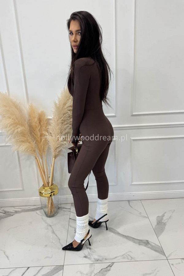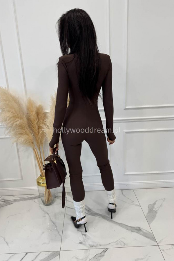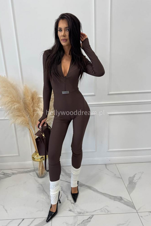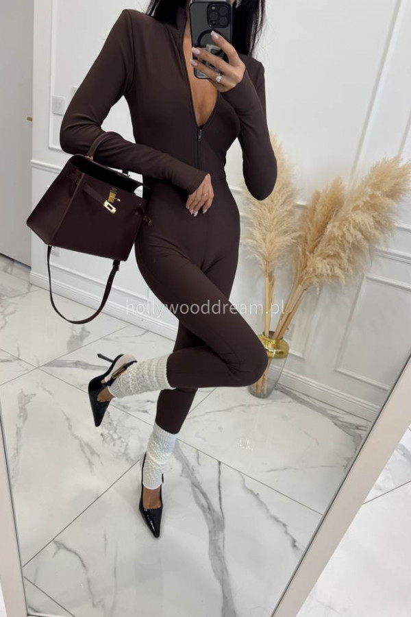Czekoladowy kombinezon prążkowany z zamkiem GOSSIP 197