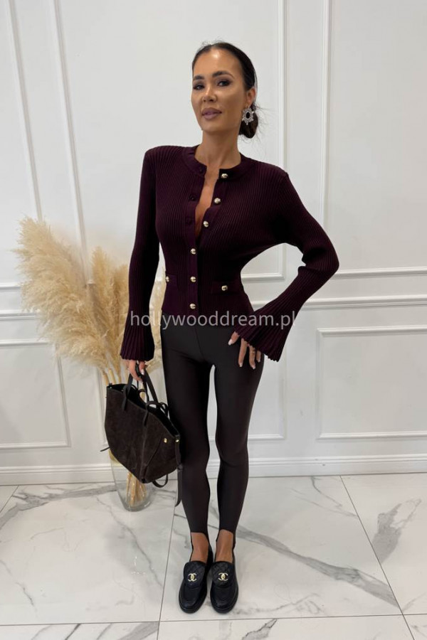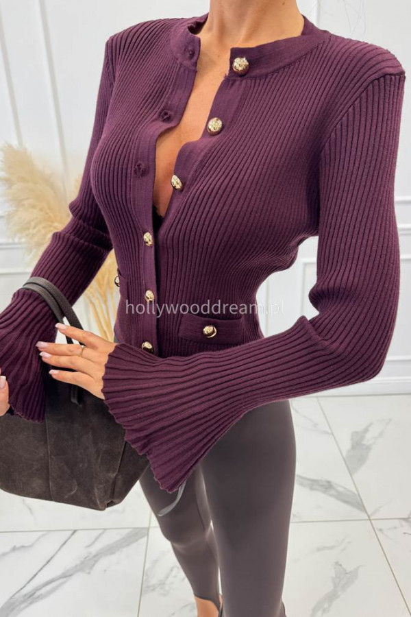 - Sweterek z rozszerzanymi rękawami i pozłacanymi guzikami śliwkowy KLARA