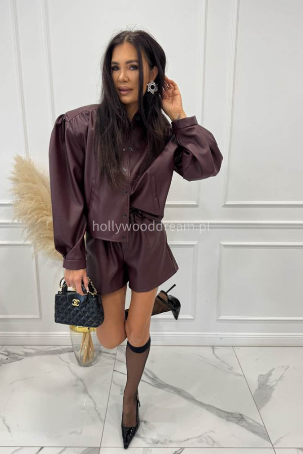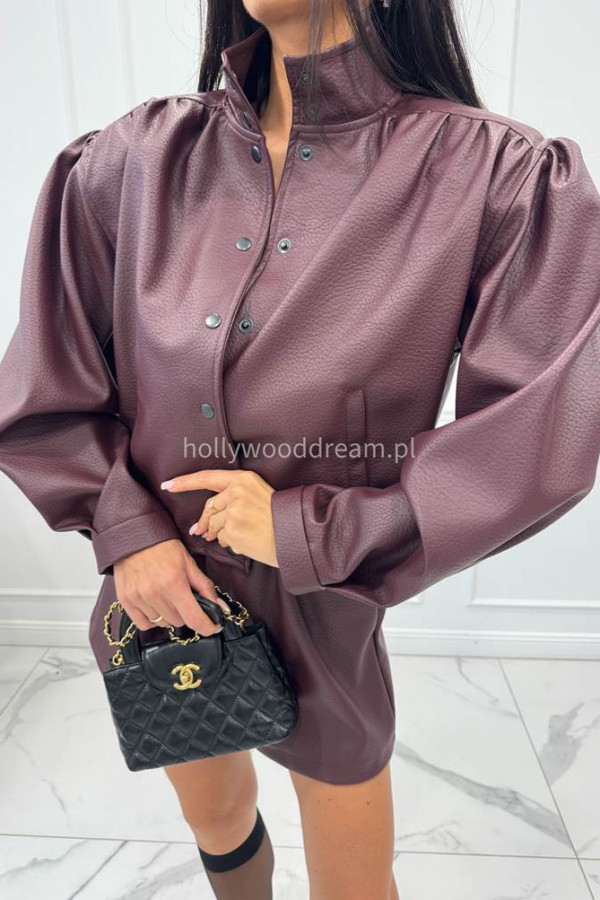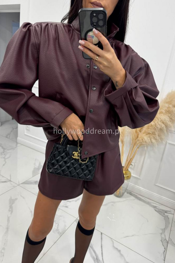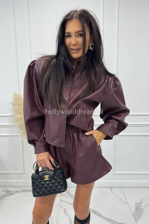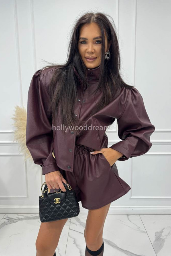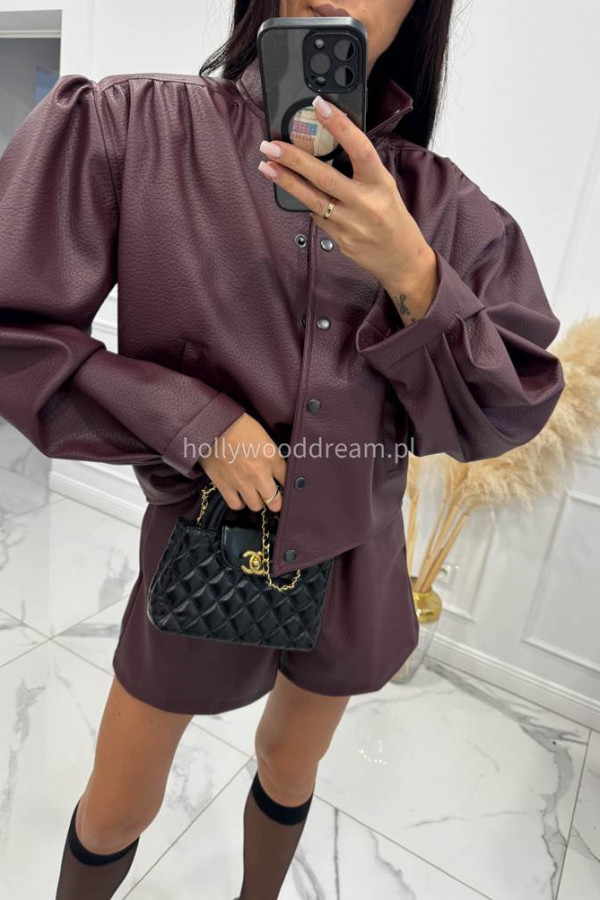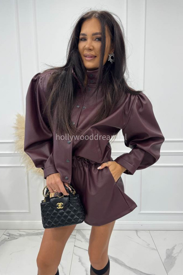 Bordowy komplet kurtka+spodenki z gniecionej skóry PENELOPY 161
