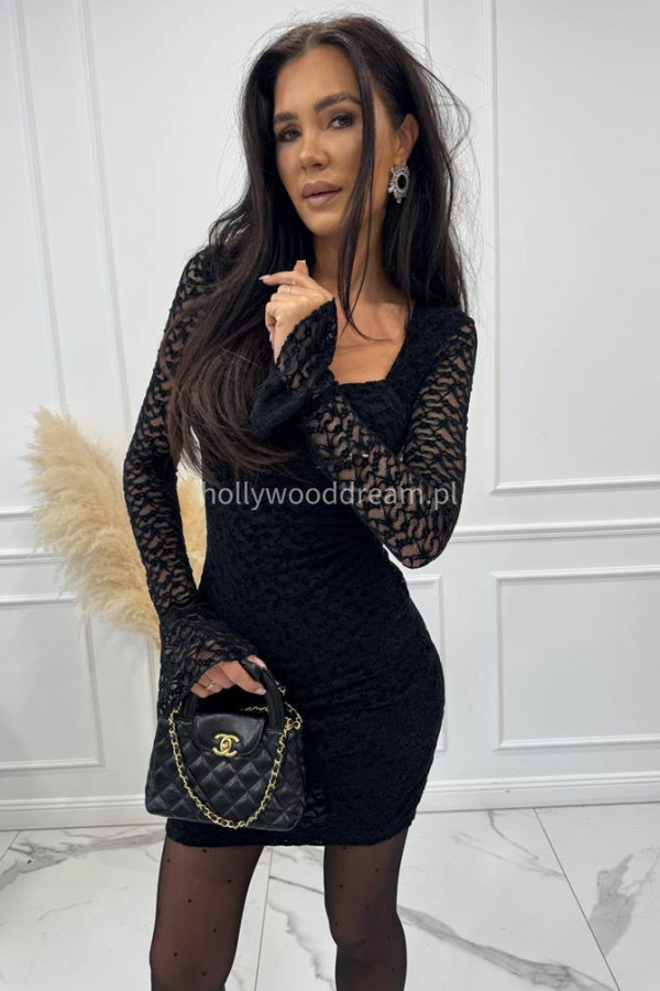 - Czarna sukienka mini z siateczki we wzory i wbudowanymi miseczkami ELENA