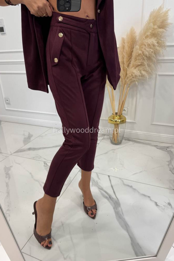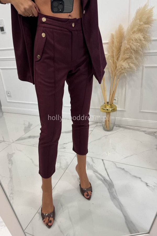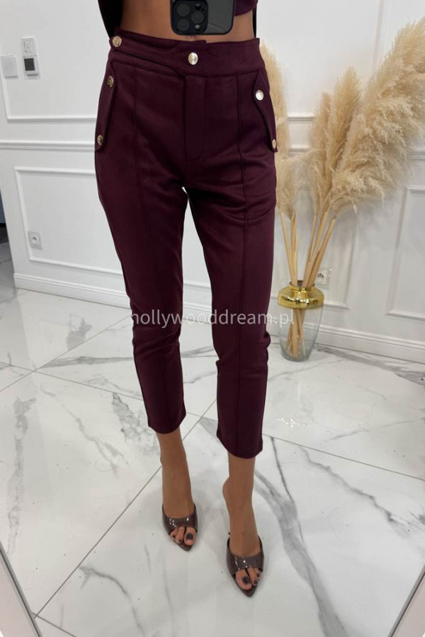 - Bordowe spodnie cygaretki ze złotymi guzikami ARIEL