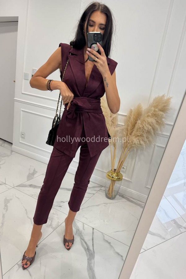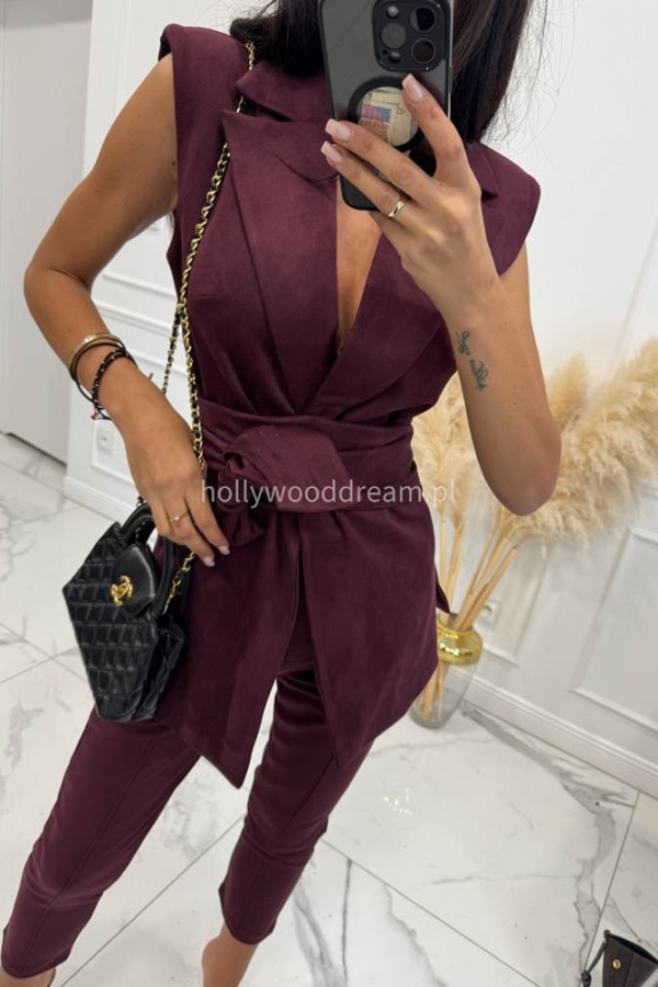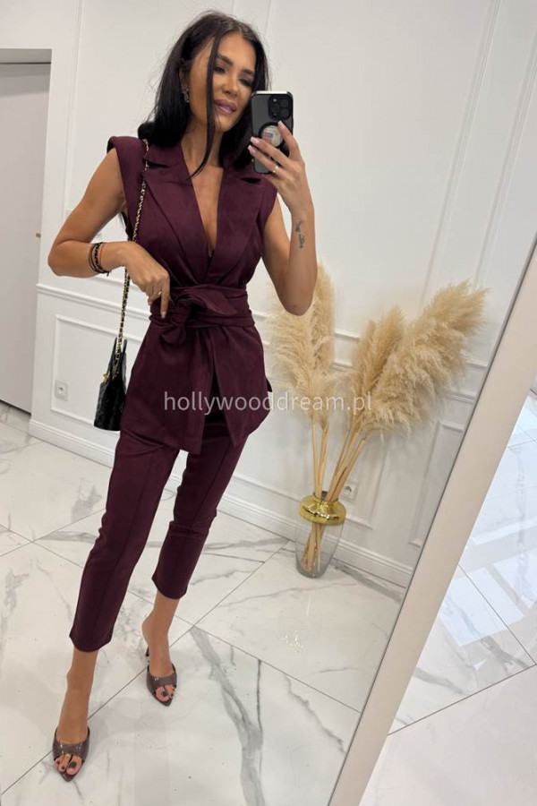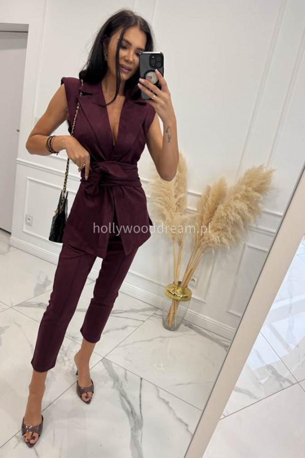Bordowe spodnie cygaretki ze złotymi guzikami ARIEL 121