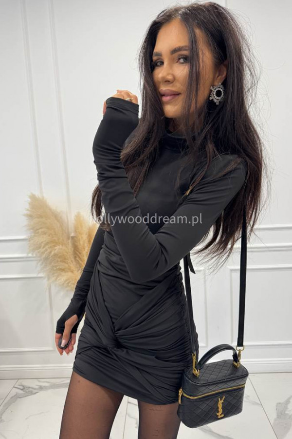 Czarna bluzka z golfem i drapowaniem na rękawach Inez 171