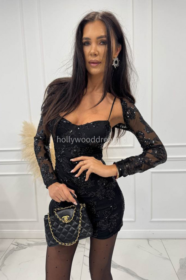 - Czarna sukienka mini z cekinami i bolerkiem SHEILA