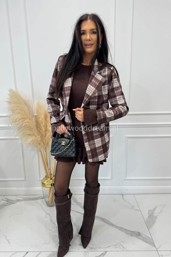 Brązowa sukienka prążkowana mini PAMELA to klasyczna propozycja, która łączy kobiecość i wygodę. Wykonana z elastycznego materiału, idealnie dopasowuje się do sylwetki, a subtelna falbana na dole dodaje jej lekkości i uroku. Długi rękaw sprawia, że model ten sprawdzi się również w chłodniejsze dni – zarówno na co dzień, jak i na wieczorne wyjścia.