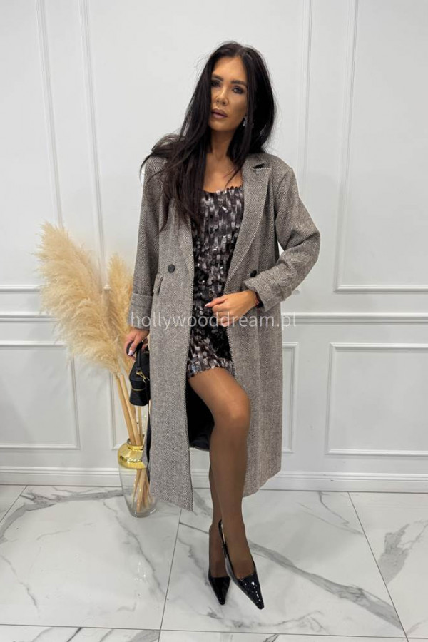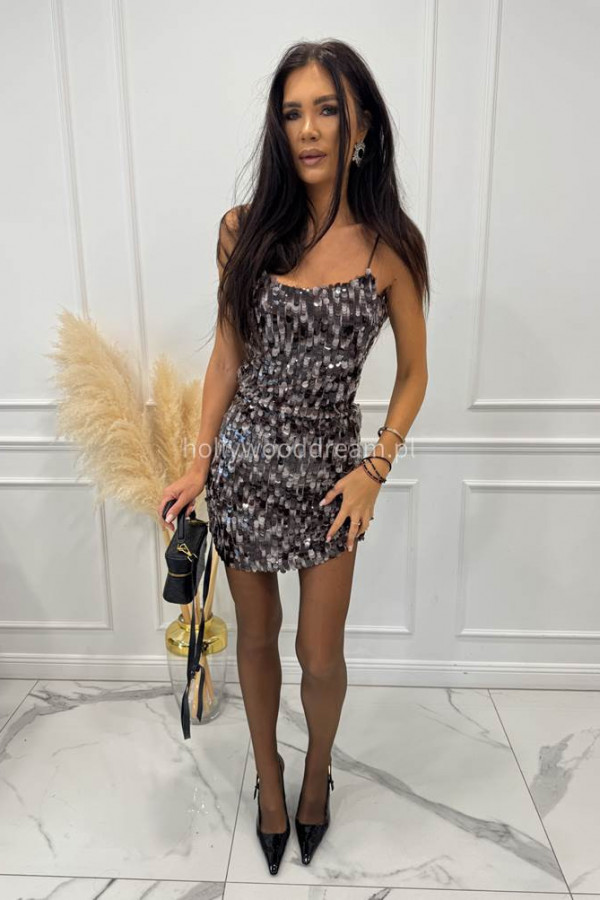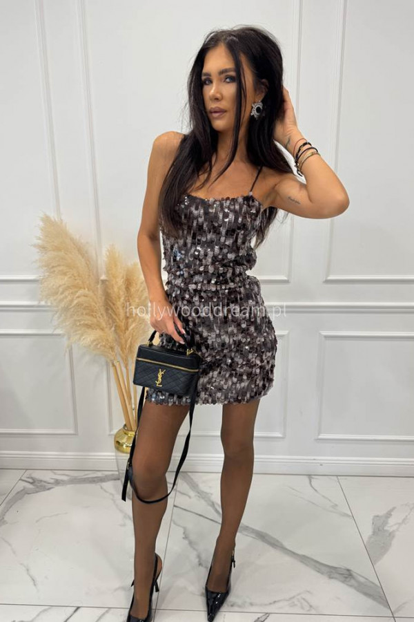 Brązowa sukienka mini na ramiączkach cekinowa STELLA 09
