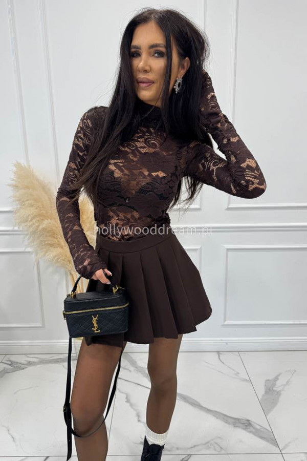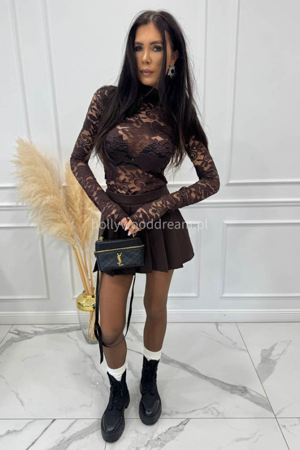 - Czekoladowa Bluzka koronkowa z golfem IDA 25