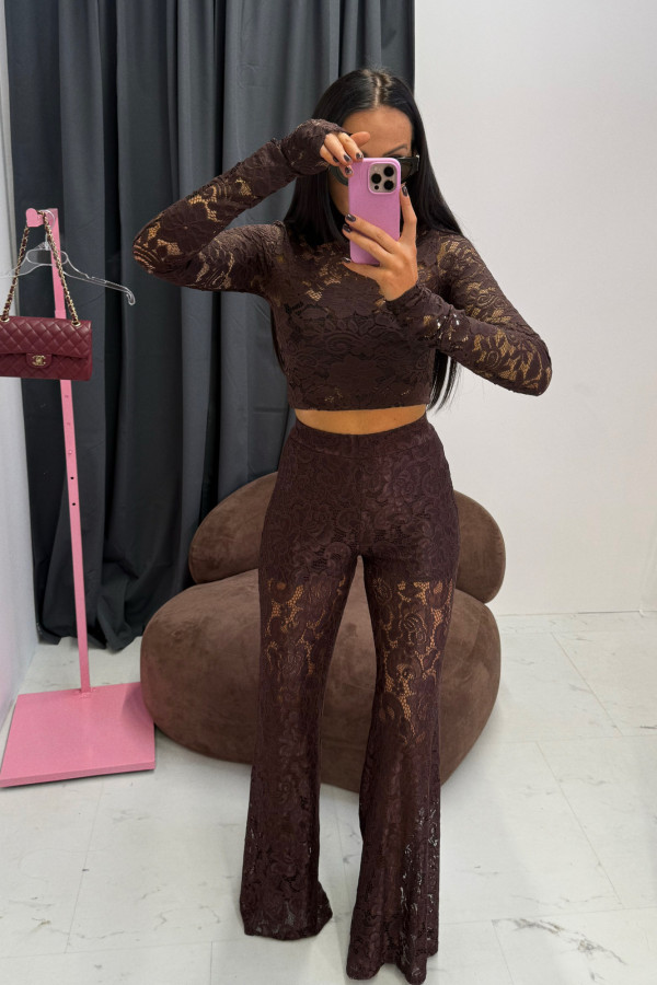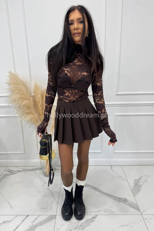 Czekoladowa Bluzka koronkowa z golfem IDA 25