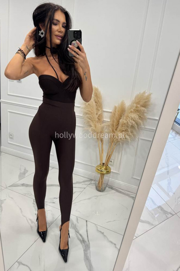- Czekoladowe legginsy z zapiętką IRMA 69