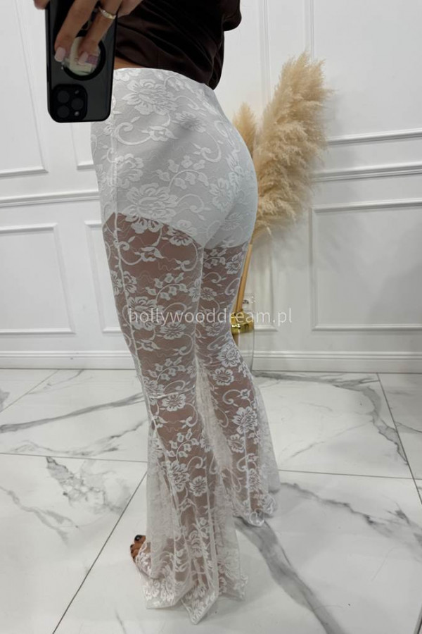 Białe spodnie koronkowe typu dzwony TYMON 19,17