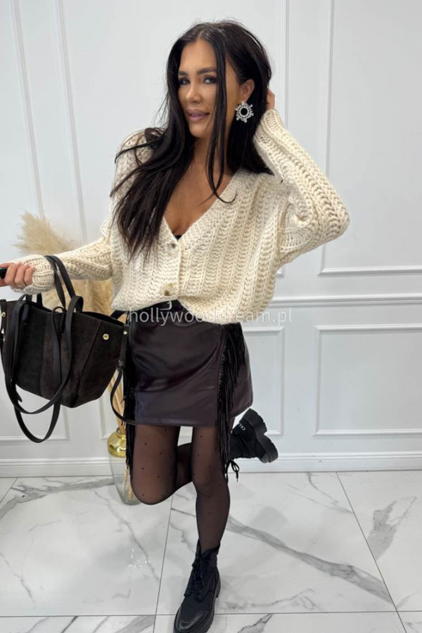 - Ciemno bordowa spódniczka skórzana mini z frędzlami i paskiem OLKA