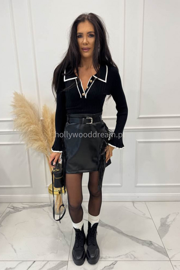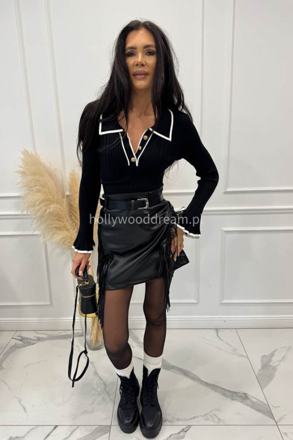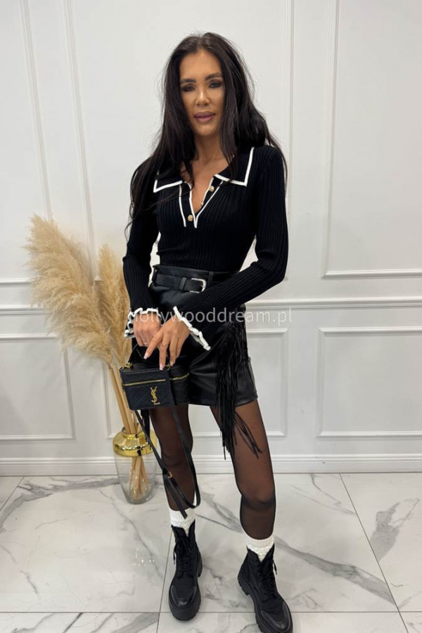 Czarny cienki sweterek z lamówką i pozłacanymi guzikami CUTE 09