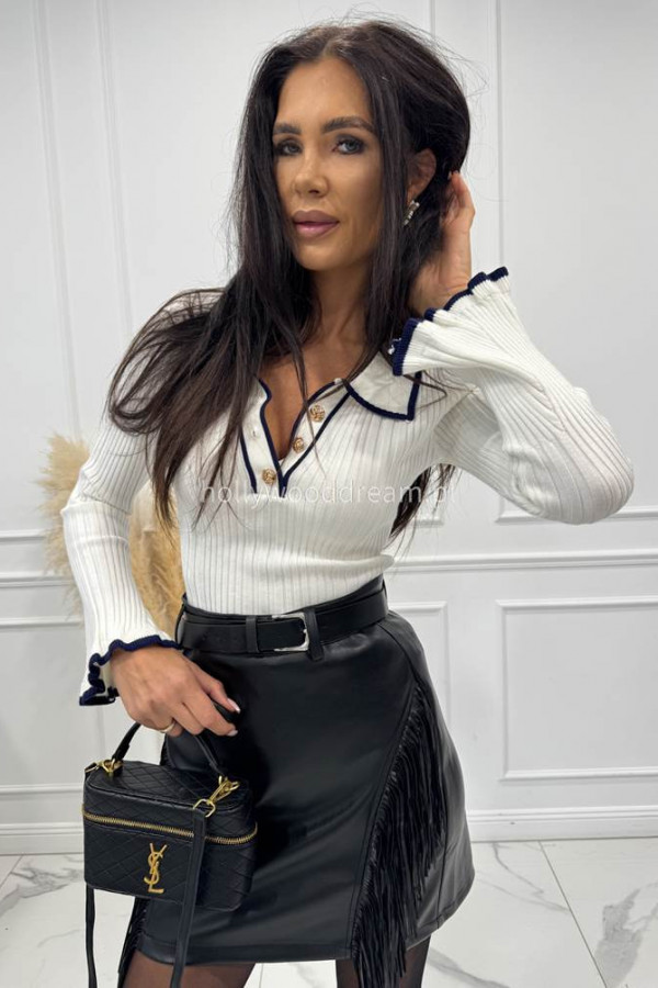 Biały cienki sweterek z lamówką i pozłacanymi guzikami CUTE 09