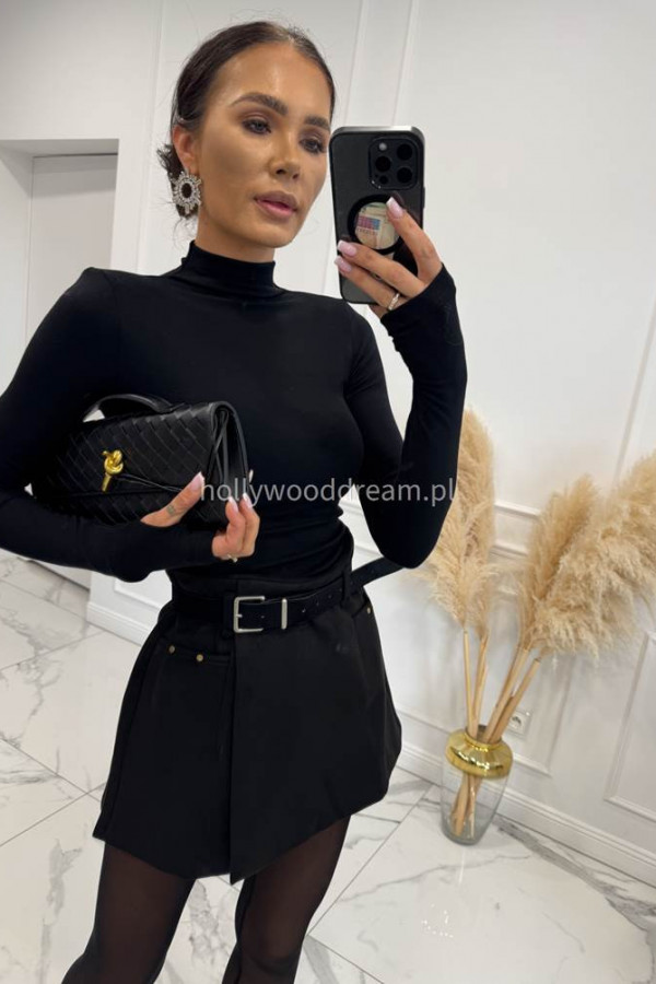 Czarne spódnico - spodenki na zakładkę z paskiem Ariya 09